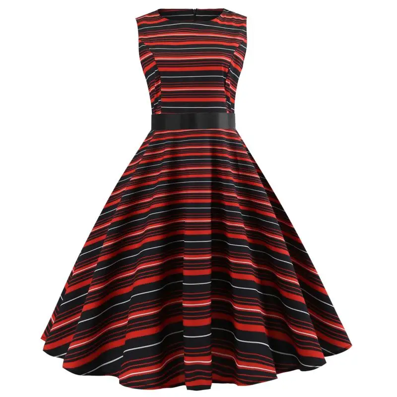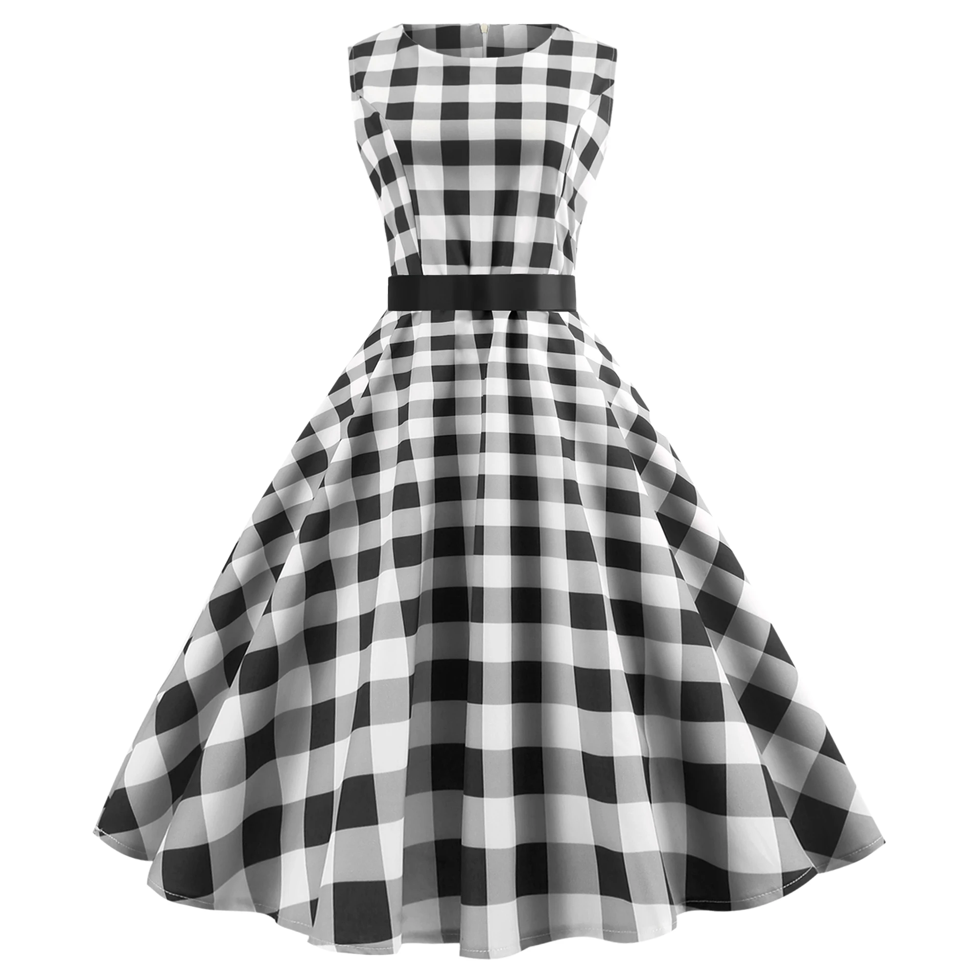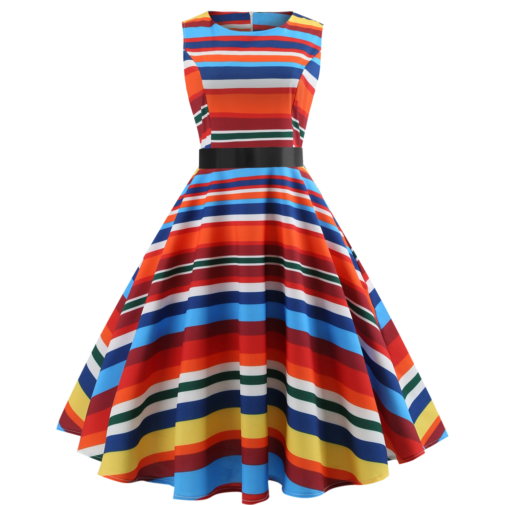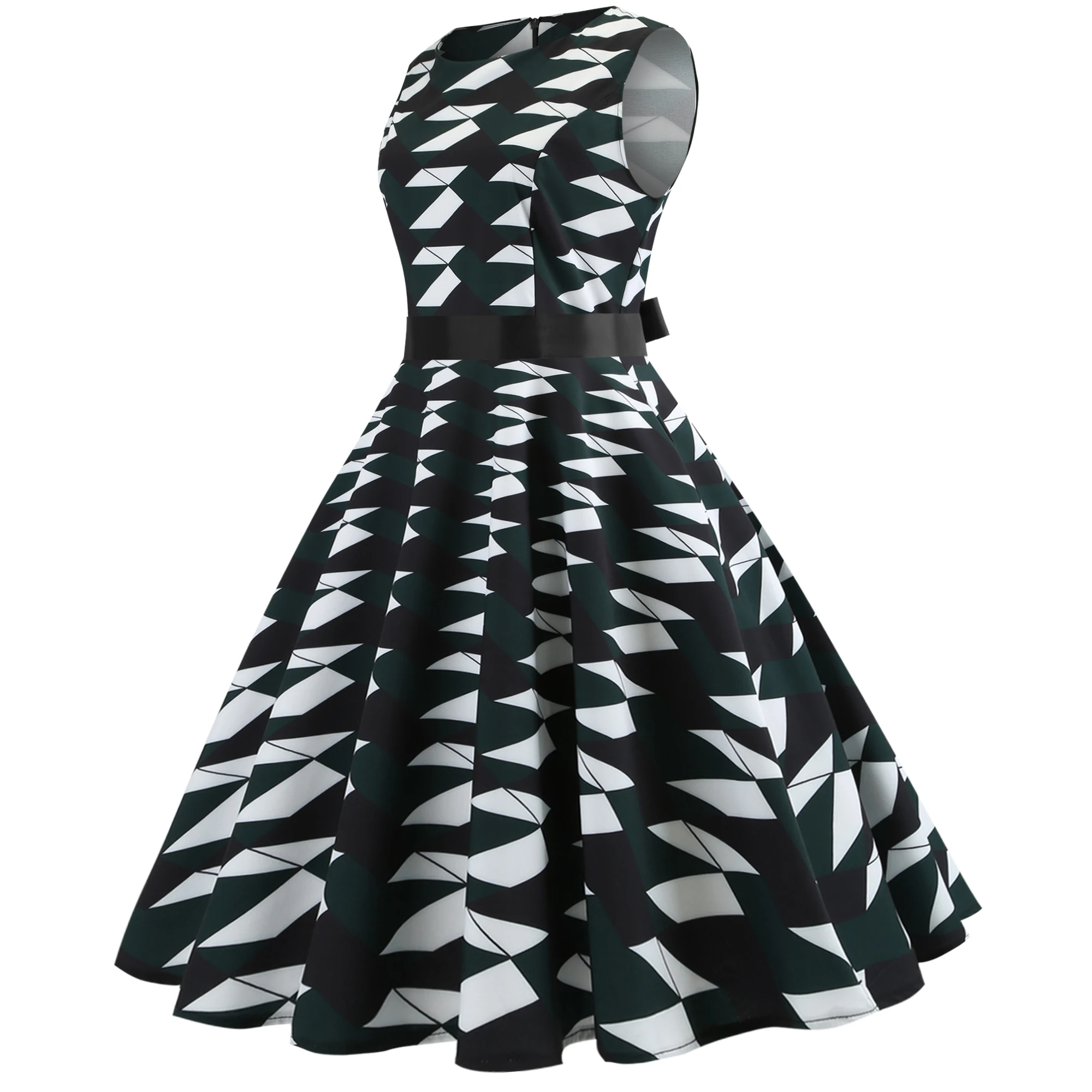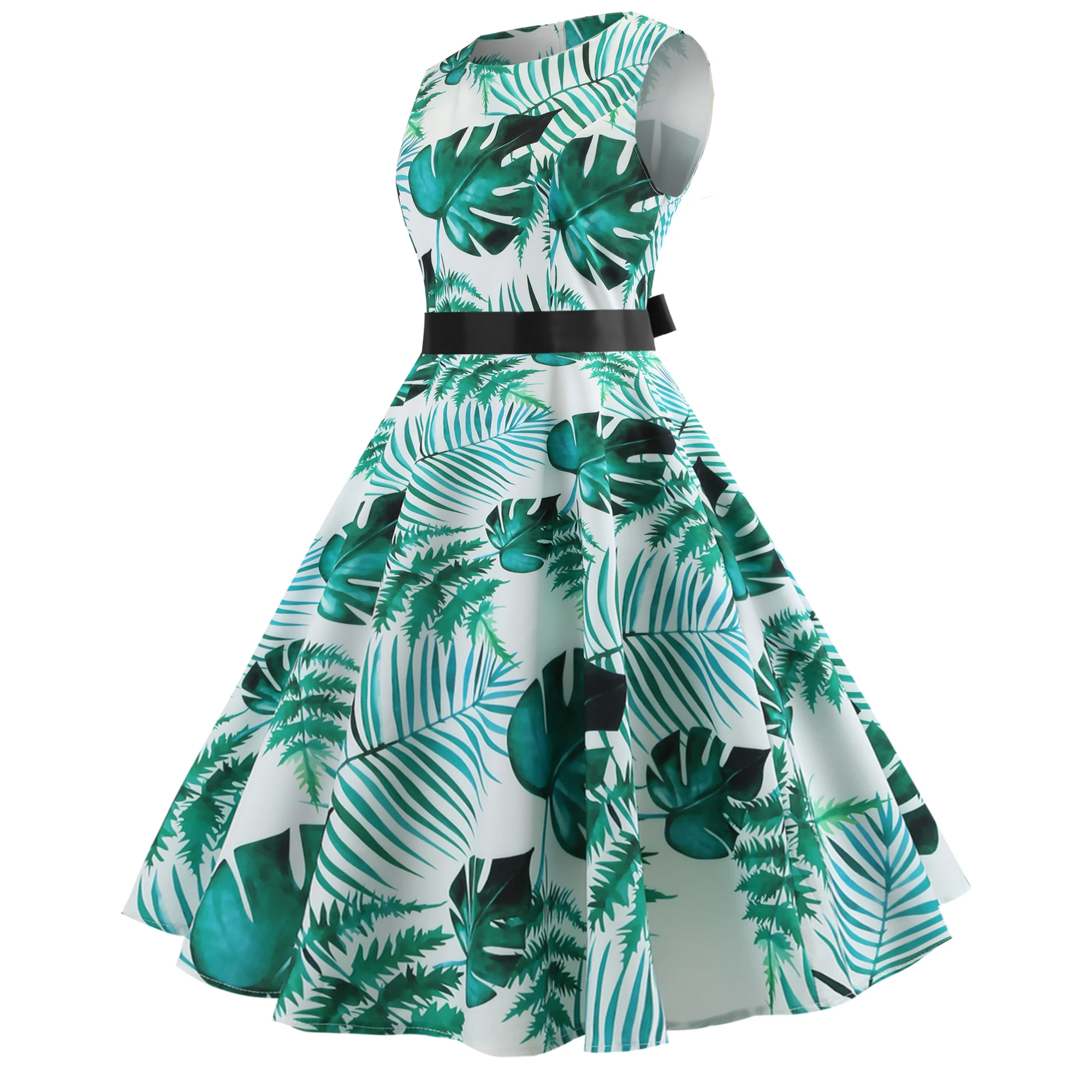 Bebovizi Fashion 2019 Summer Women Hepburn 50s Vintage Floral Print Sleeveless Retro Swing Casual Elegant Party Bandage Dress