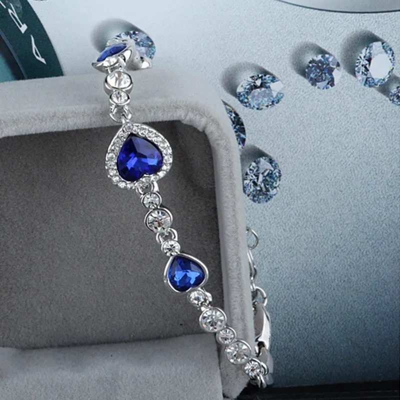 1 pc fashion Heart Bangle Bracelet Gift New Fashion Women Ocean Blue Crystal Rhinestone fine jewelry New