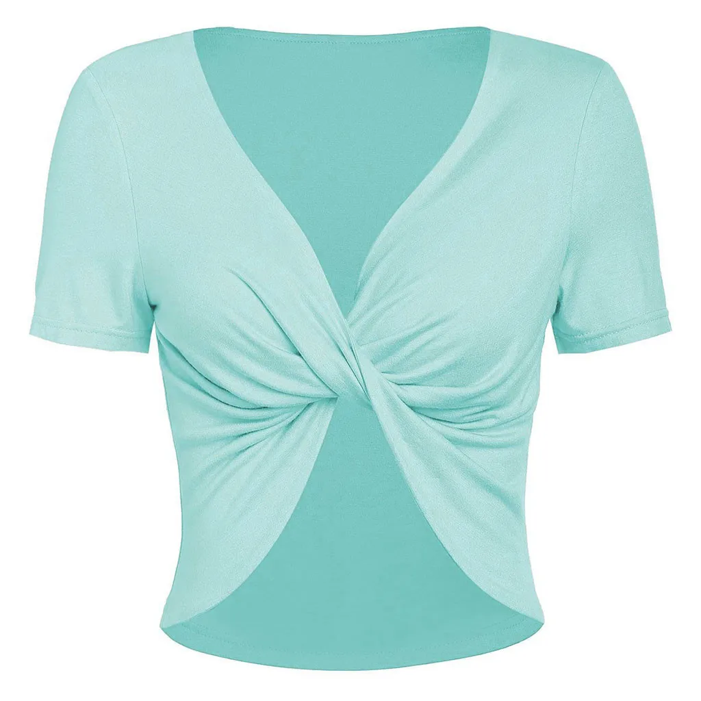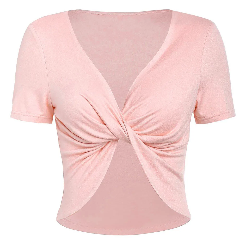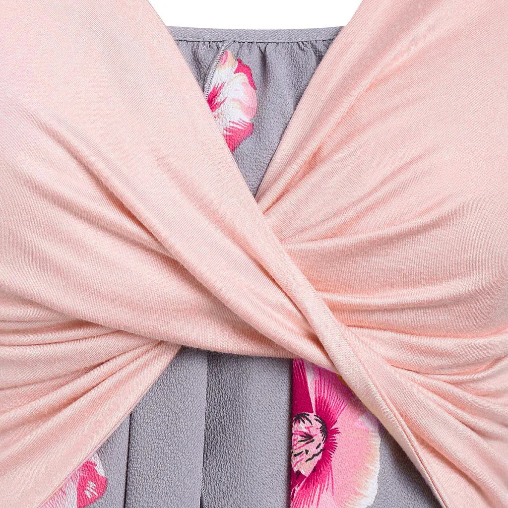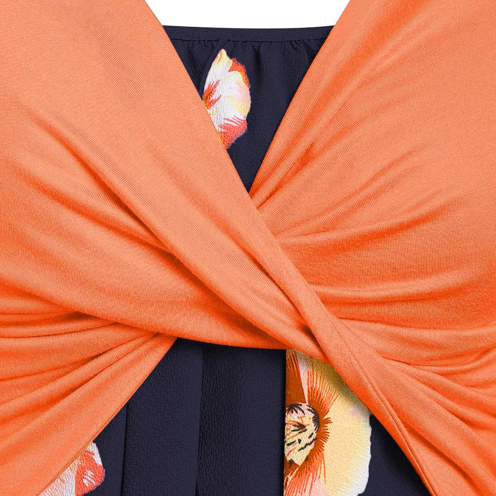 Women Fashion Short Sleeve Front Criss Cross Top + Floral Print Mini Dress Suits