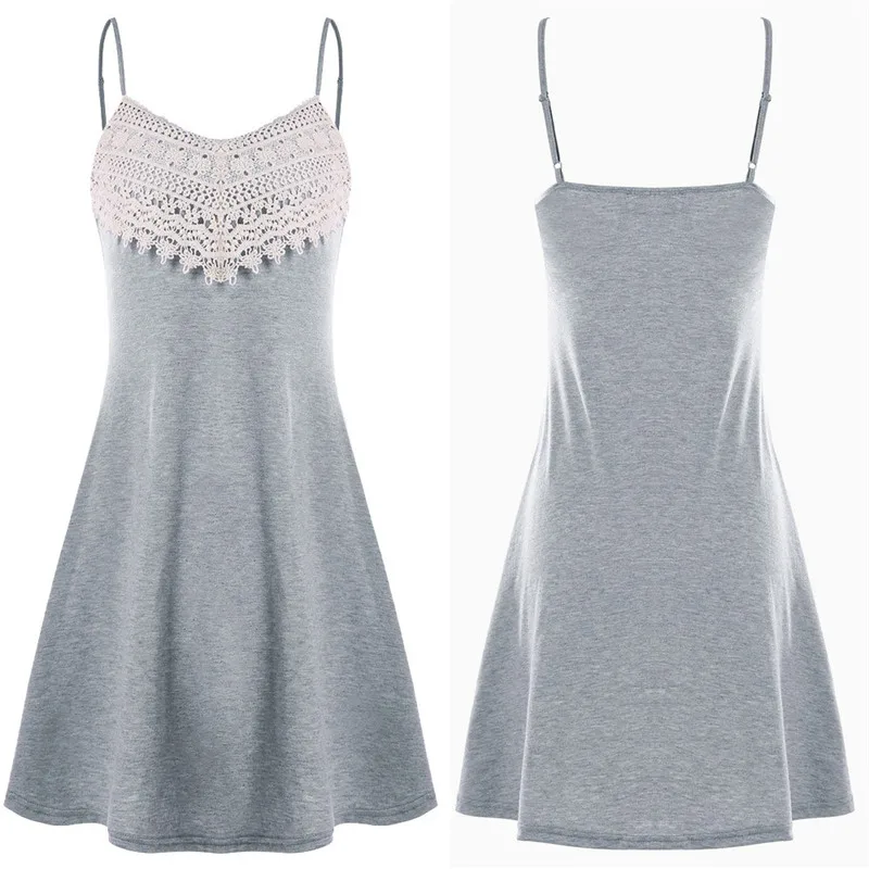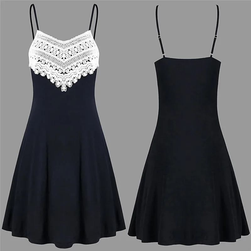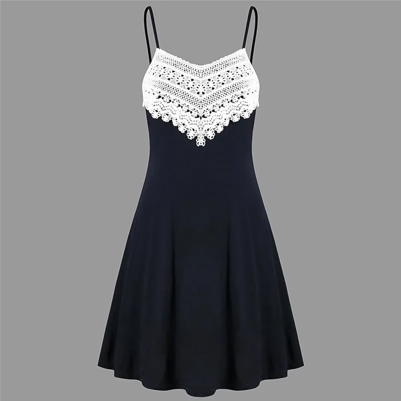 Summer Dress Fashion Womens Crochet Lace Backless Mini Slip Dress Camisole Sleeveless Dress Sexy Elegant A-Line Sundress Vestido