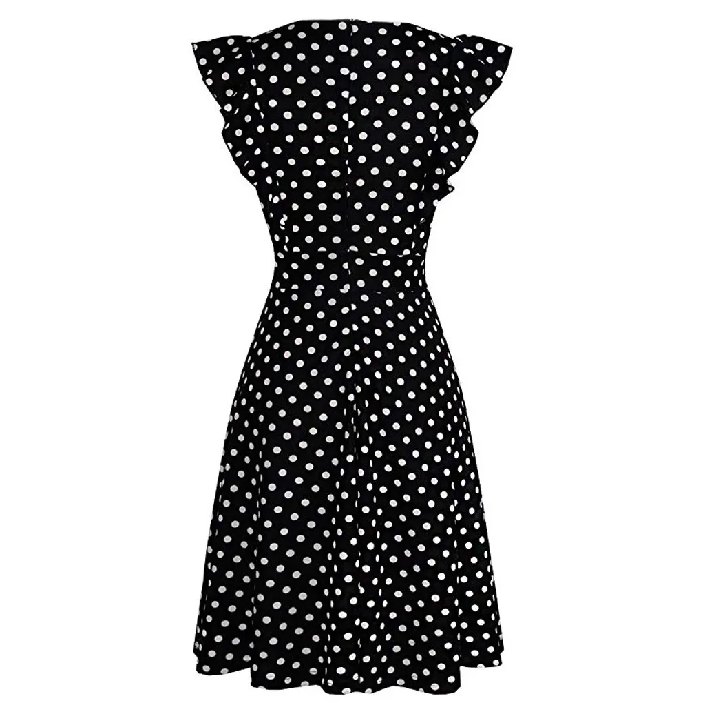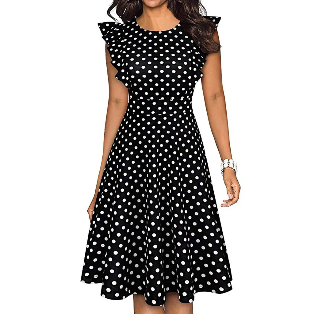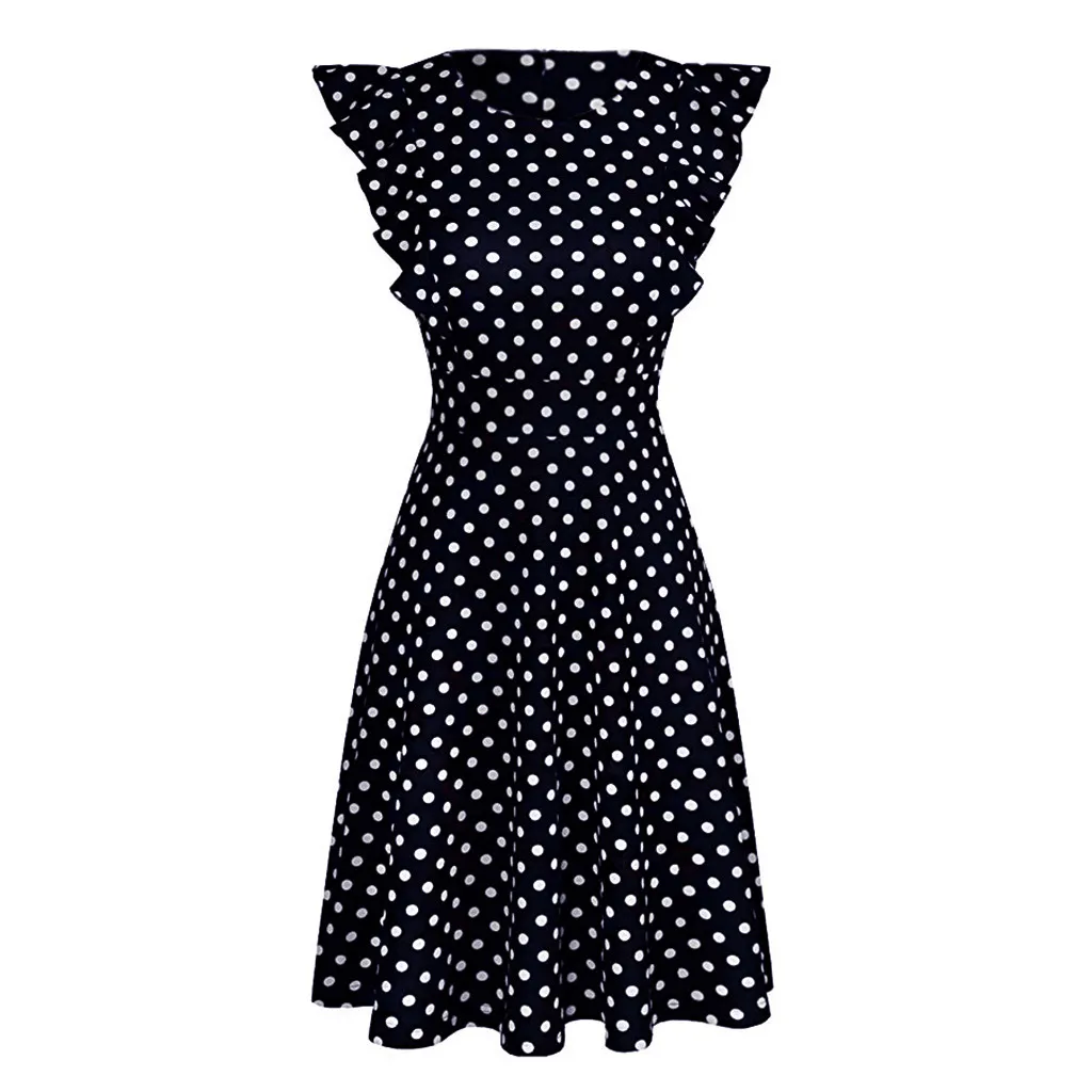 Description:Women Vintage Dot Printed Ruffle Sleeveless Casual Cocktail Party Dresses
