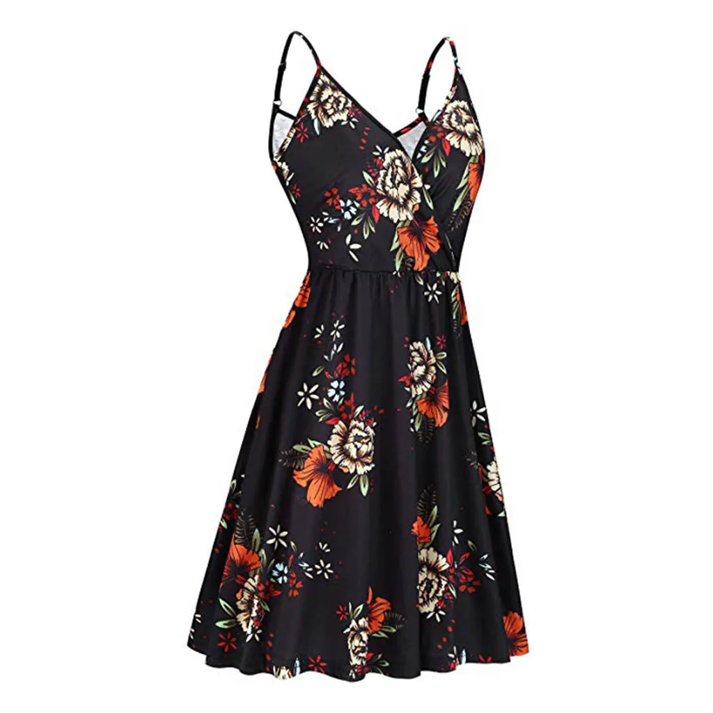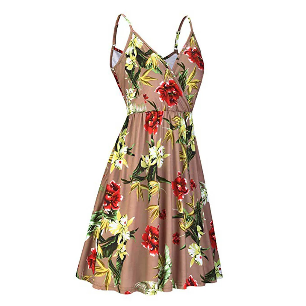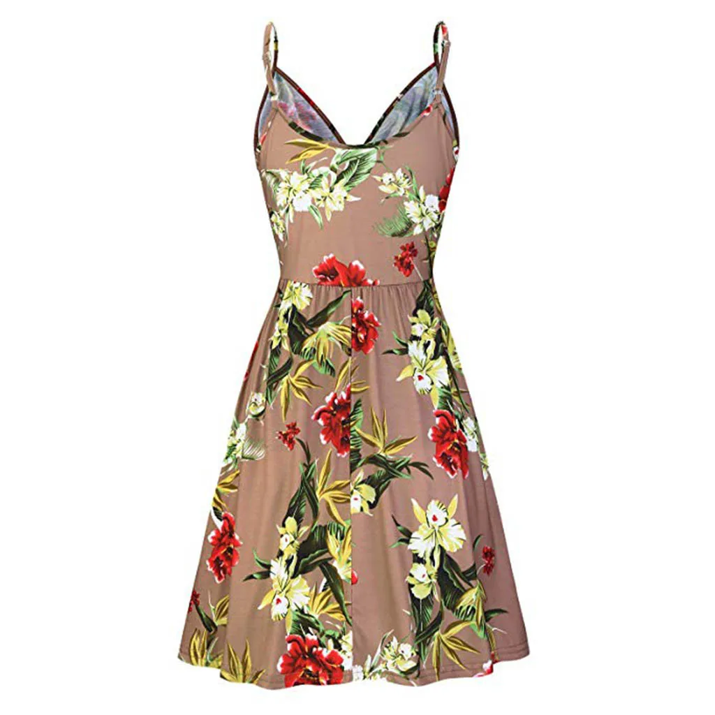 Women's Vintage Printed Sleeveless Strappy Summer Beach Swing Camis Dress